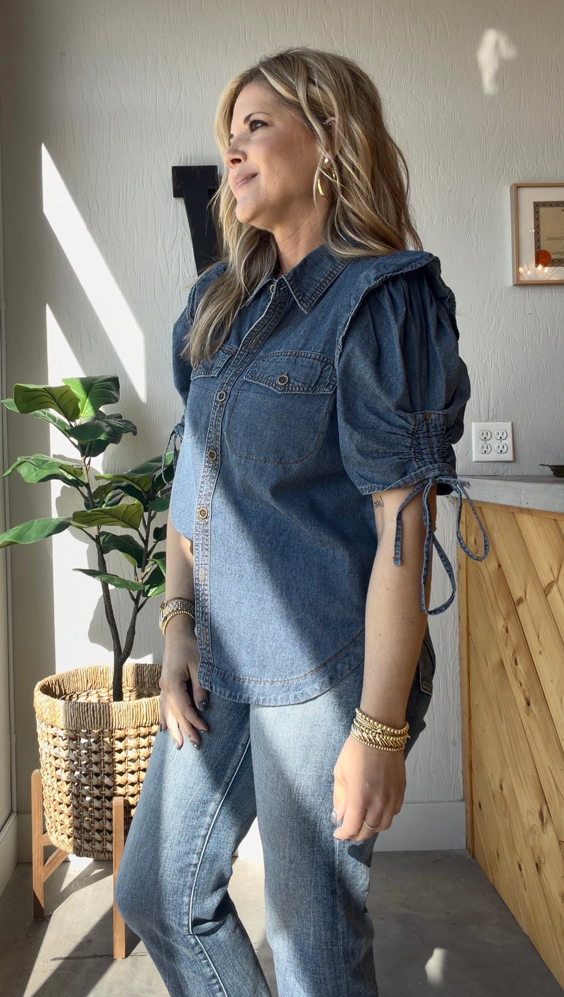 A relaxed chambray top with classic front pockets and subtle structure that makes everyday styling easy.