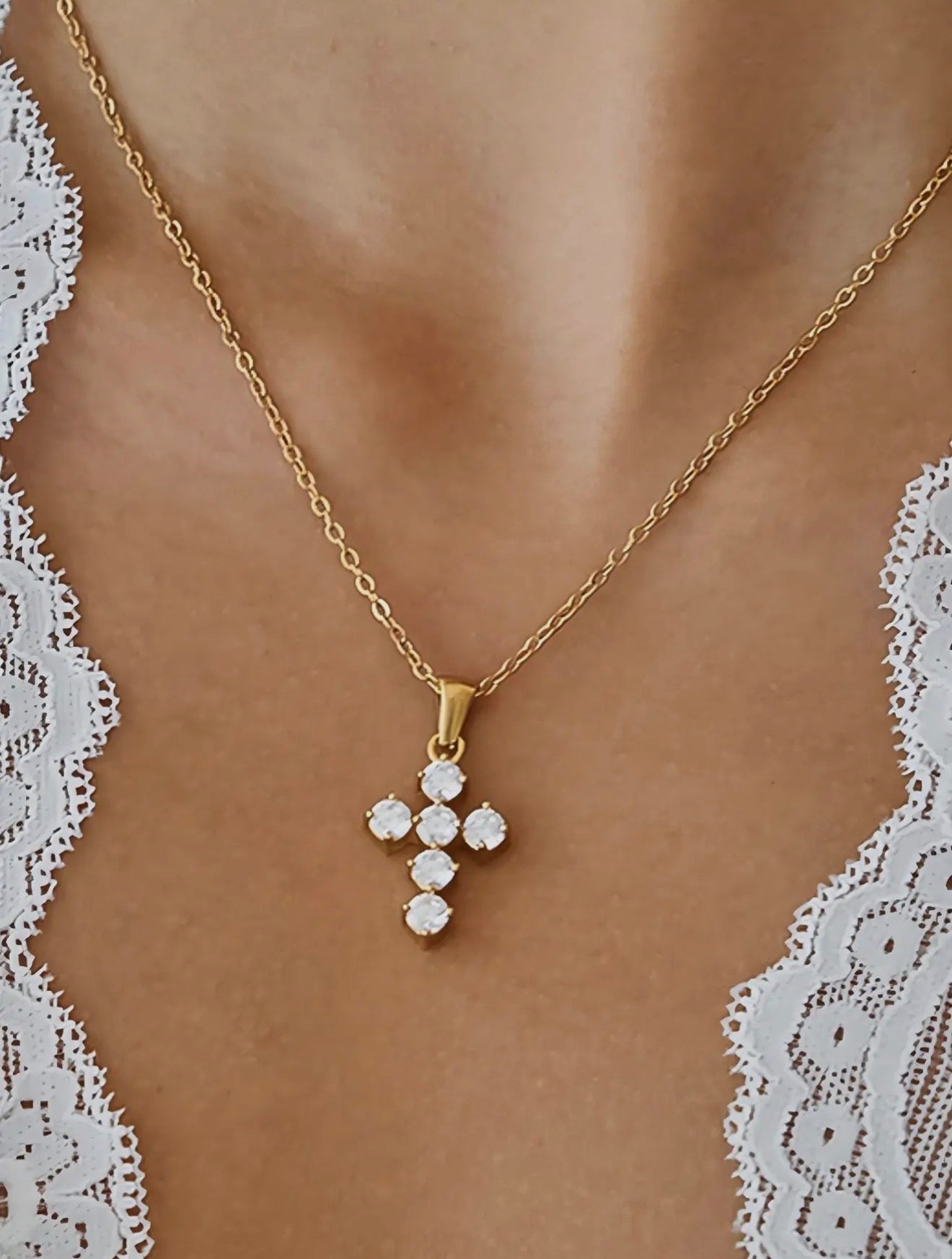 18K Gold Non-Tarnish Dainty Cross Necklace
