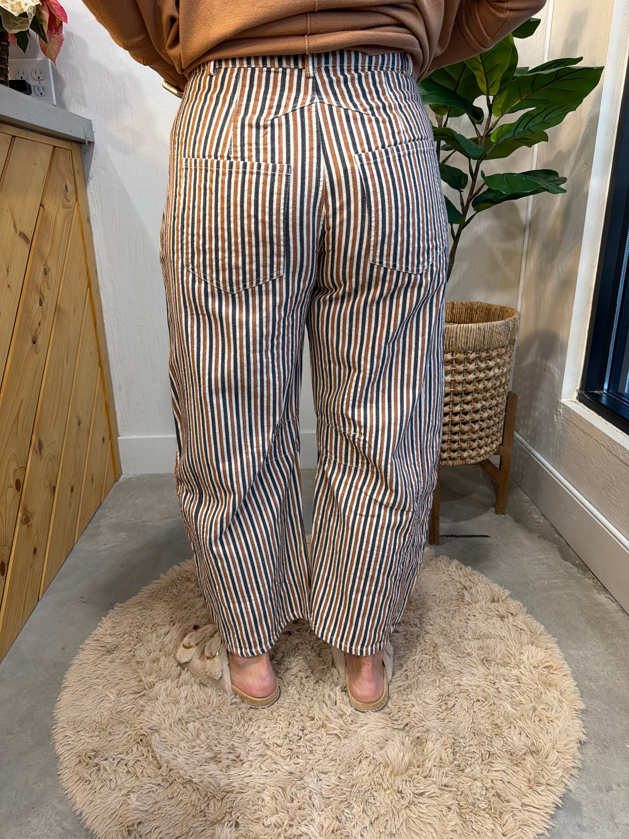 These ultra-comfortable striped barrel pants bring a relaxed, modern shape with a soft, woven feel.