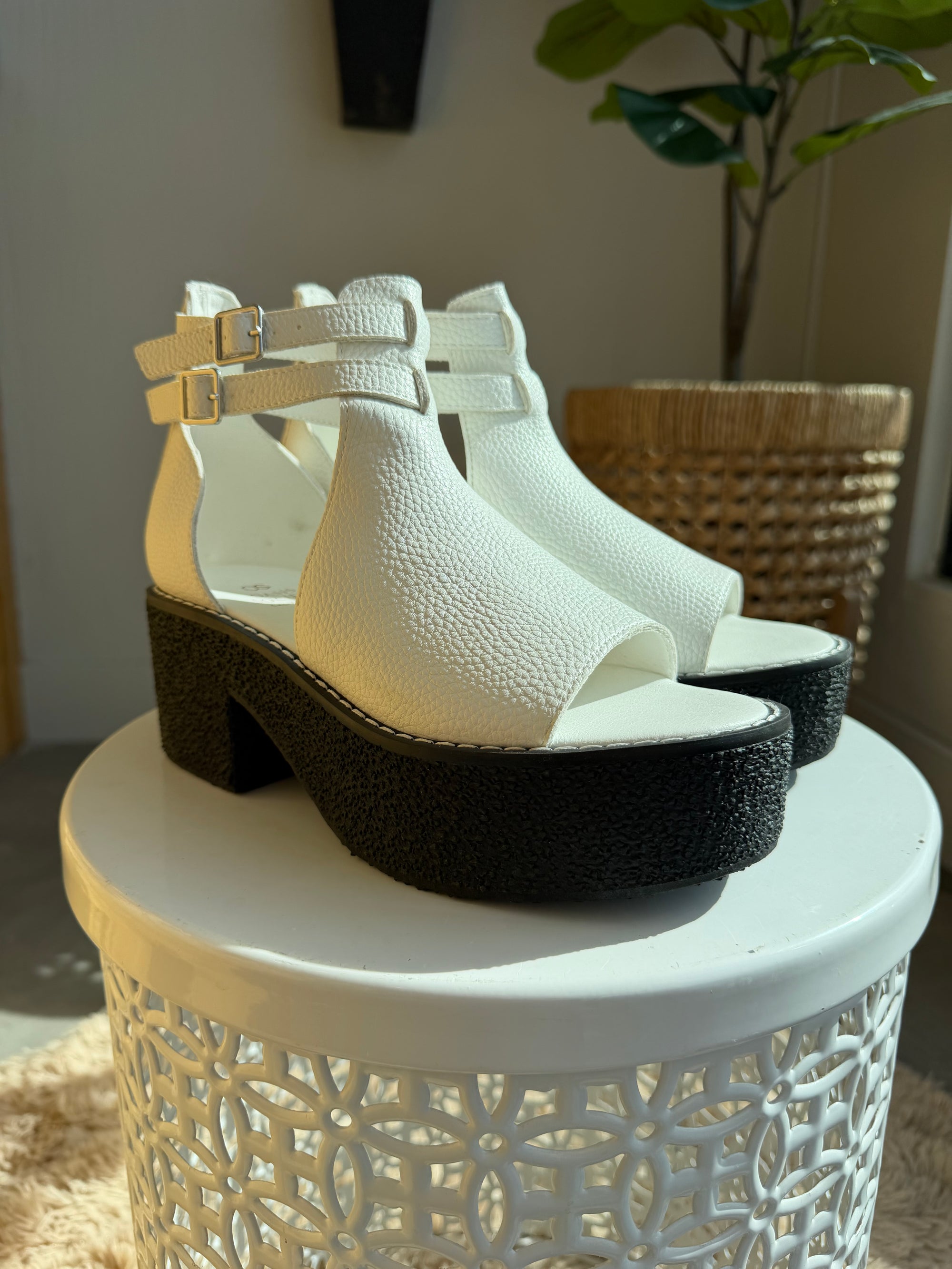 This modern, statement-making sandal from Oasis Society is designed with a chunky platform and sleek double-strap design. The pebbled upper and bold contrast sole give it a fashion-forward feel, while the adjustable buckles keep the fit secure.
