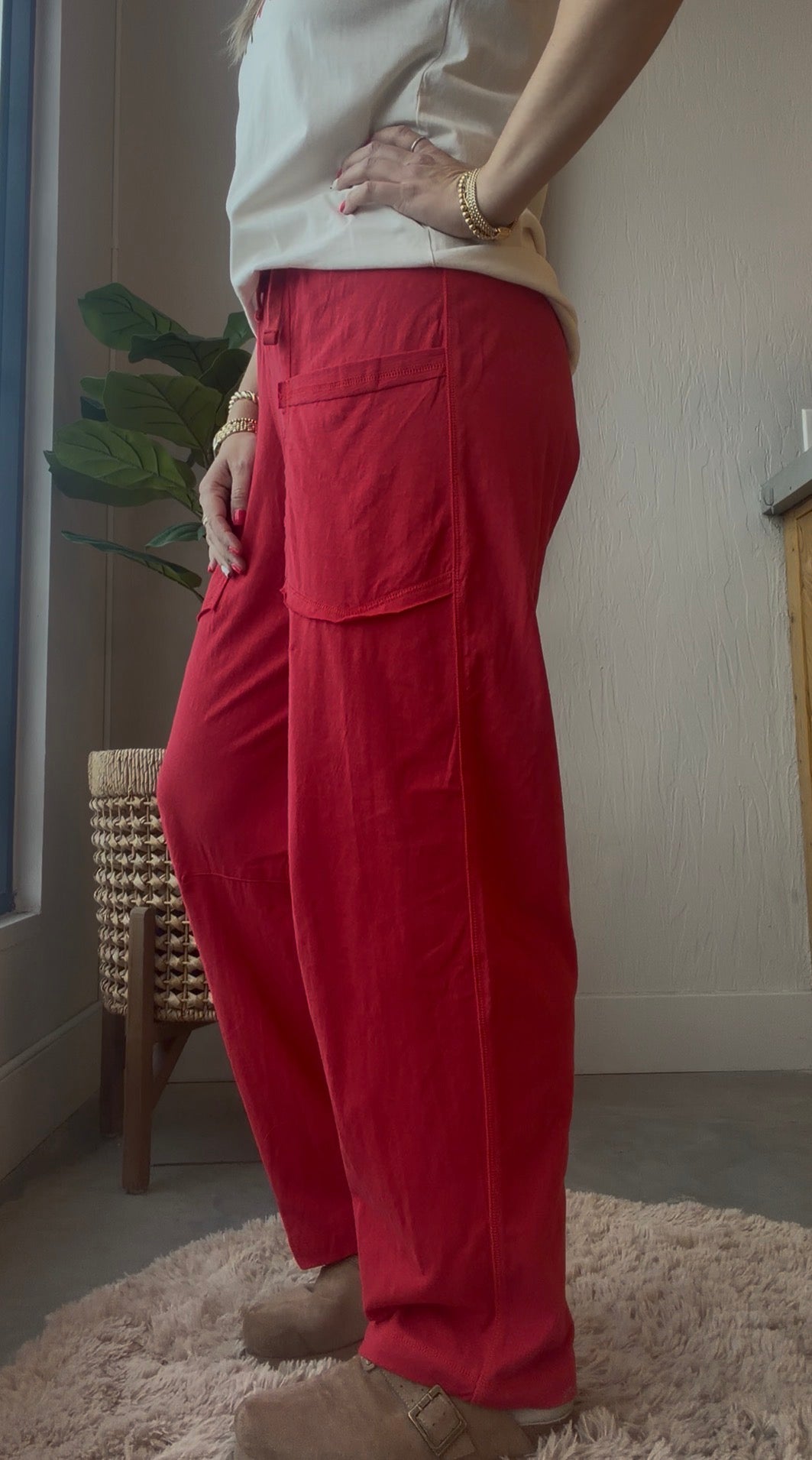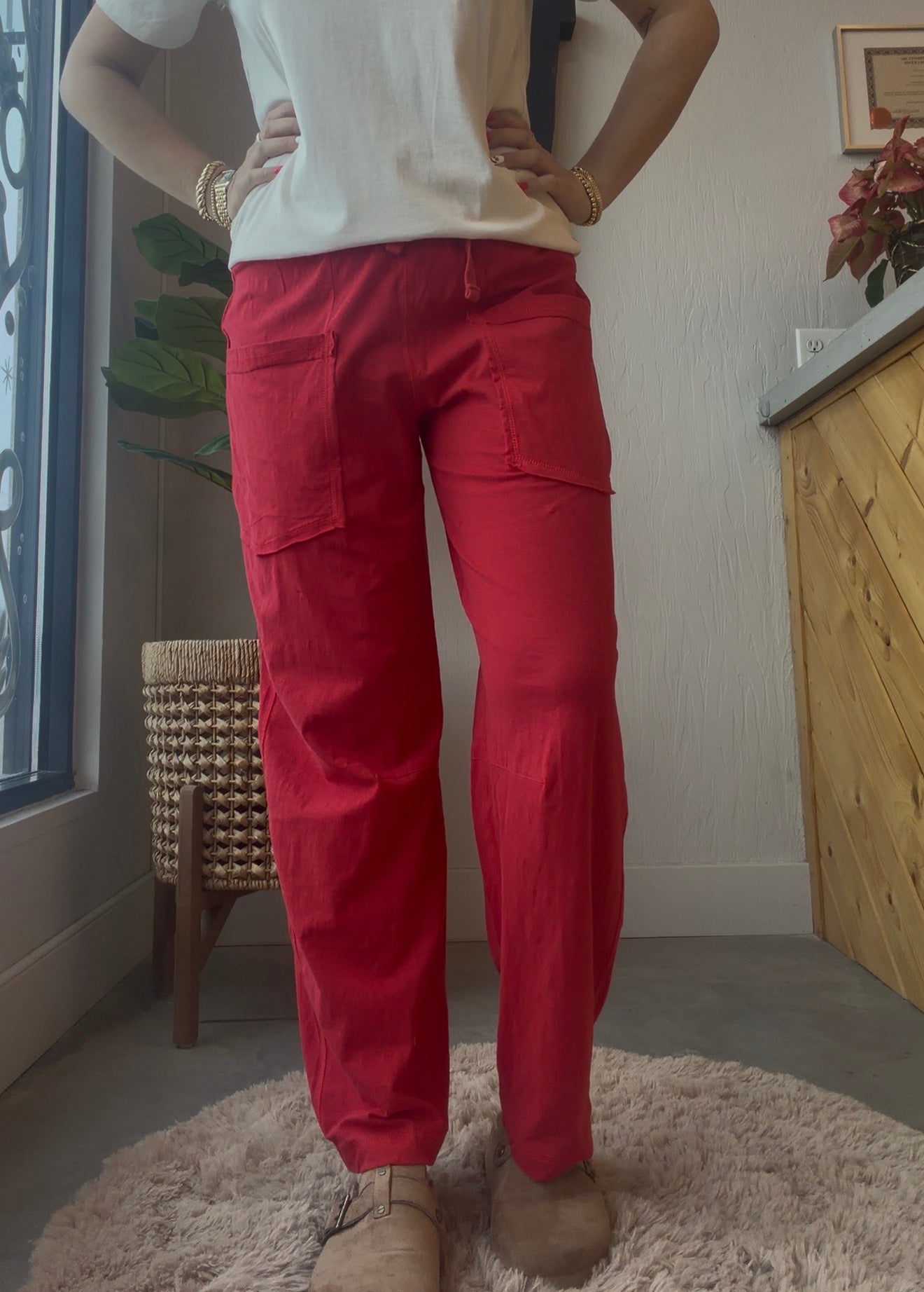An easygoing barrel pant made from lightweight cotton fabric. Designed with an elastic drawstring waist, functional pockets, and a relaxed fit that moves with you. Perfect for casual days, travel, or laid-back weekends.