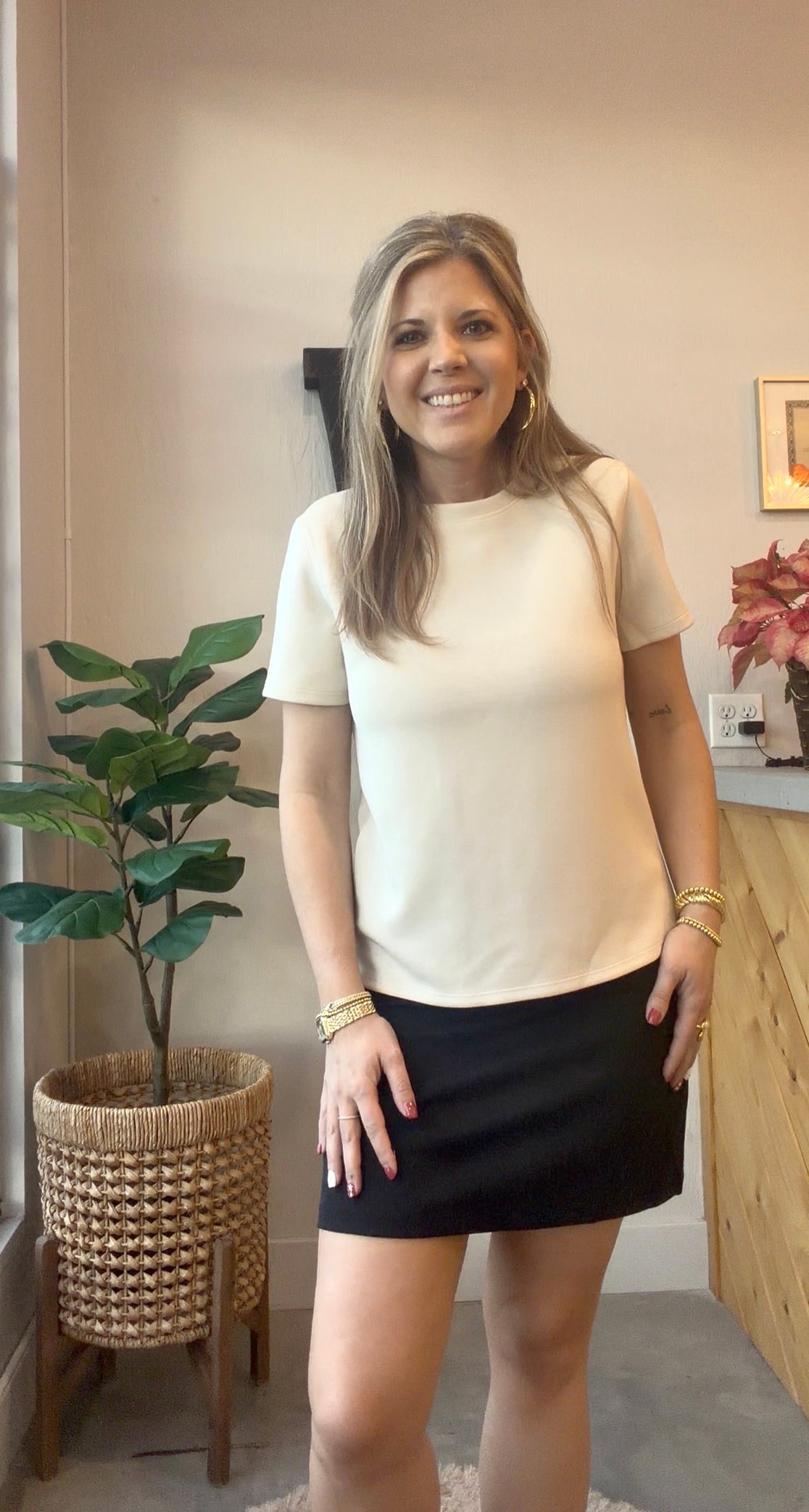 This buttery-soft tee features a clean, classic silhouette that makes it effortlessly versatile. Polished enough to dress up with a skirt, denim, or layered jewelry, yet comfortable enough for everyday wear. The smooth, lightweight fabric drapes beautifully without clinging, making it perfect for workdays, weekends, and everything in between.